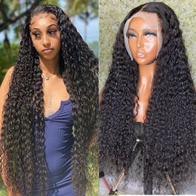 13x6 Deep Wave Frontal Wig Brazilian 5x5 Closure HD Wet and Wavy Lace Front Wig Water Wave Curly Human Hair Wigs For Women (Stretched Length: 18inches, Color: 13x4 Lace Wig)