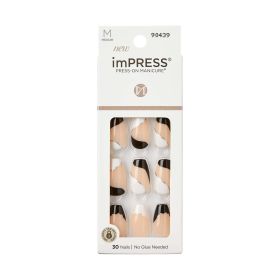 KISS imPRESS Medium Coffin Gel Press-On Nails, Glossy Black & White, 30 Pieces