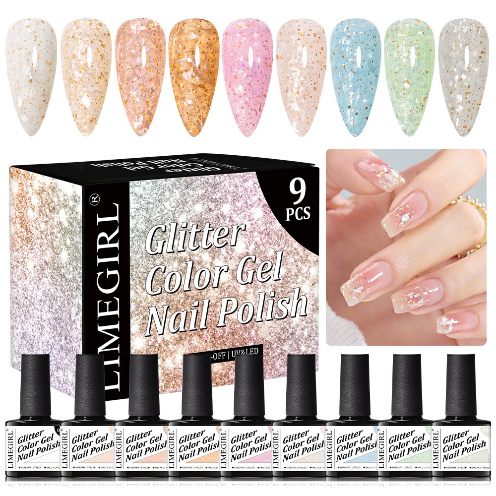 1.Limegirl Reflective Glitter Gel Nail Polish Set 8ML Cloud Shell Gel Manicure Varnish Semi-Permanent Nail Polish Set