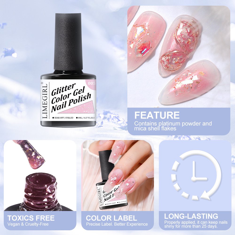 Home > Limegirl Reflective Glitter Gel Nail Polish Set 8ML Cloud Shell Gel Manicure Varnish Semi-Permanent Nail Polish Set